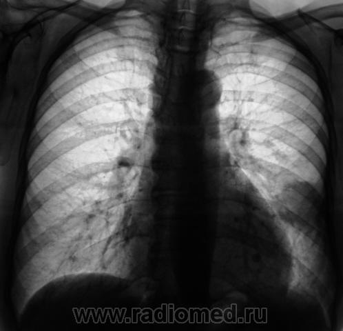 На сайте "Радиография", уважаемым Владимиром Борисовичем Серовым, выставлен интересный случай - круглая тень в нижнем легочном поле, зафиксированная на рентгенограмме органов грудной полости, произведенной в прямой стандартной проекции.