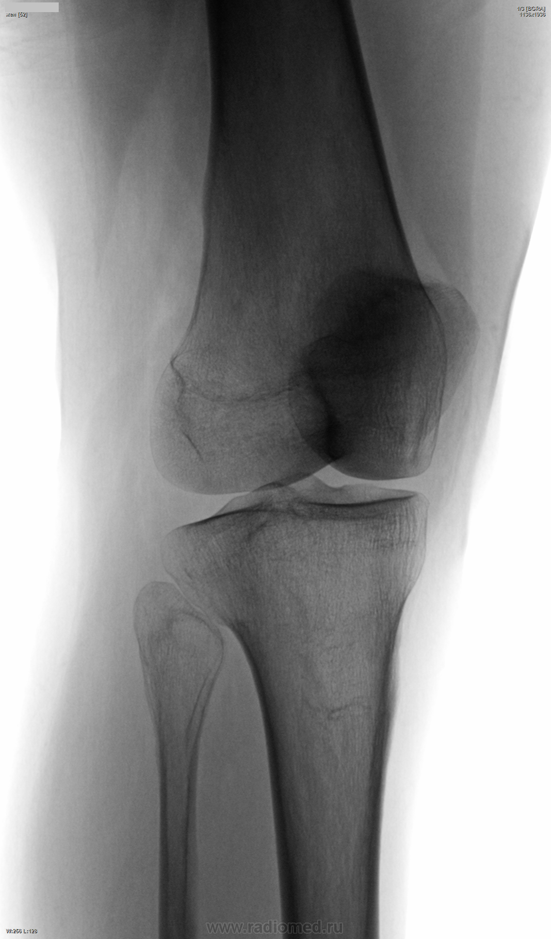 Да, глаз прицепился к головке малоберцовой. Решил, что сломалась как-то - отломок призначился - доснял косую проекцию через пару дней я. Оказалось, тень (эностоз/перелом(?)) в большеберцовой сидит - и кто это он, о чём говорит?..