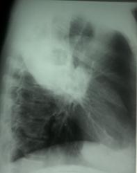 Понятно, что тактика лечения и обследования на дому - неудачная тактика. Тактика в т/о, на мой взгляд, - тоже. Похоже, пациент подлежит переводу в хирургическое отделение, лучше в торакальную хирургию. Дальнейшая диагностическая и лечебная тактика будет зависеть от возможностей отделения. Существует еще чудесная тактика стандартов ОМС, согласно которой больной не может, например, занять место в онкологическом отделении без подтверждающих результатов гистологии. Путь же амбулаторного пациента от первого рентгеновского снимка до результата занимает месяцы с учетом полуторомесячной очереди на запись в Областной ОД и возможностей самого пациента пройти платную СКТ в другой области. Или я "загнул" немного?