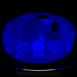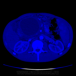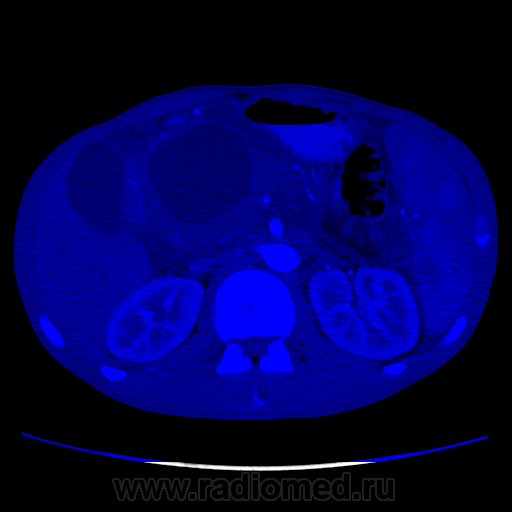 Молодой человек никогда не болел панкреатитами, спросил были ли периоды сильных болей в животе вообще - говорит "не припомню", не выпивающий и тп. Сейчас клиника - боли, плохие анализы биохимии крови (не помню уже какие). Для псевдокист всё подходит, кроме клиники... Не очень представляю я себе, чтобы такой бессимптомный острый процесс, который тут якобы был, который сформироваться бы в такие псевдокисты... Причем самая крупная киста достаточно прилично деформирует прилежащие структуры, что тоже далеко не частое явление при псевдокистах. Далее... Капсула(псевдокапсула) довольна толстая, в артериальную фазу в ней мелькают маленькие артериальные сосуды. В настоящий момент изменения по типу "панкреатита" могут быть вторичными. В общем, не знаю. Почти убедили, что это псевдокисты. Как быть с анамнезом - сомнительно. Все врут.