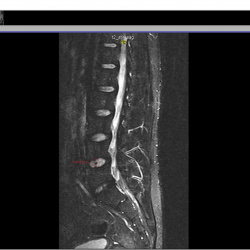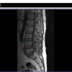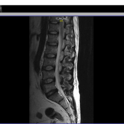 Здравствуйте. Постоянная боль в пояснице справа. Есть протрузия нижнего диска, врач говорит, что она не должна болеть т.к. маленькая. Листая снимки заметил на соседнем диске какяю-то вертикальная полоса и темное пятно при пролистывании. Это норма или что-то ещё?