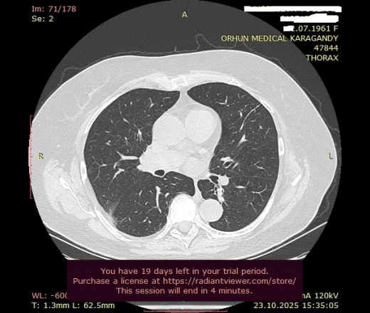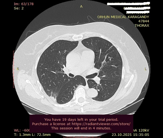 Я намеренно не привел полный анамнез пациентки, чтобы он не влиял при восприятие КТ срезов. КТ с контрастированием возможна излишняя нагрузка, ещё у пациентки аллергия на йодсодержащие контрасты. Доступные по месту жительства врачи намерены просто лечить пневмонию антибиотиками, ни по КТ, ни клинически нет мысли о ТЭЛА. То есть без сторонней помощи оптимальный подход по лечению пациентки сомнителен.
