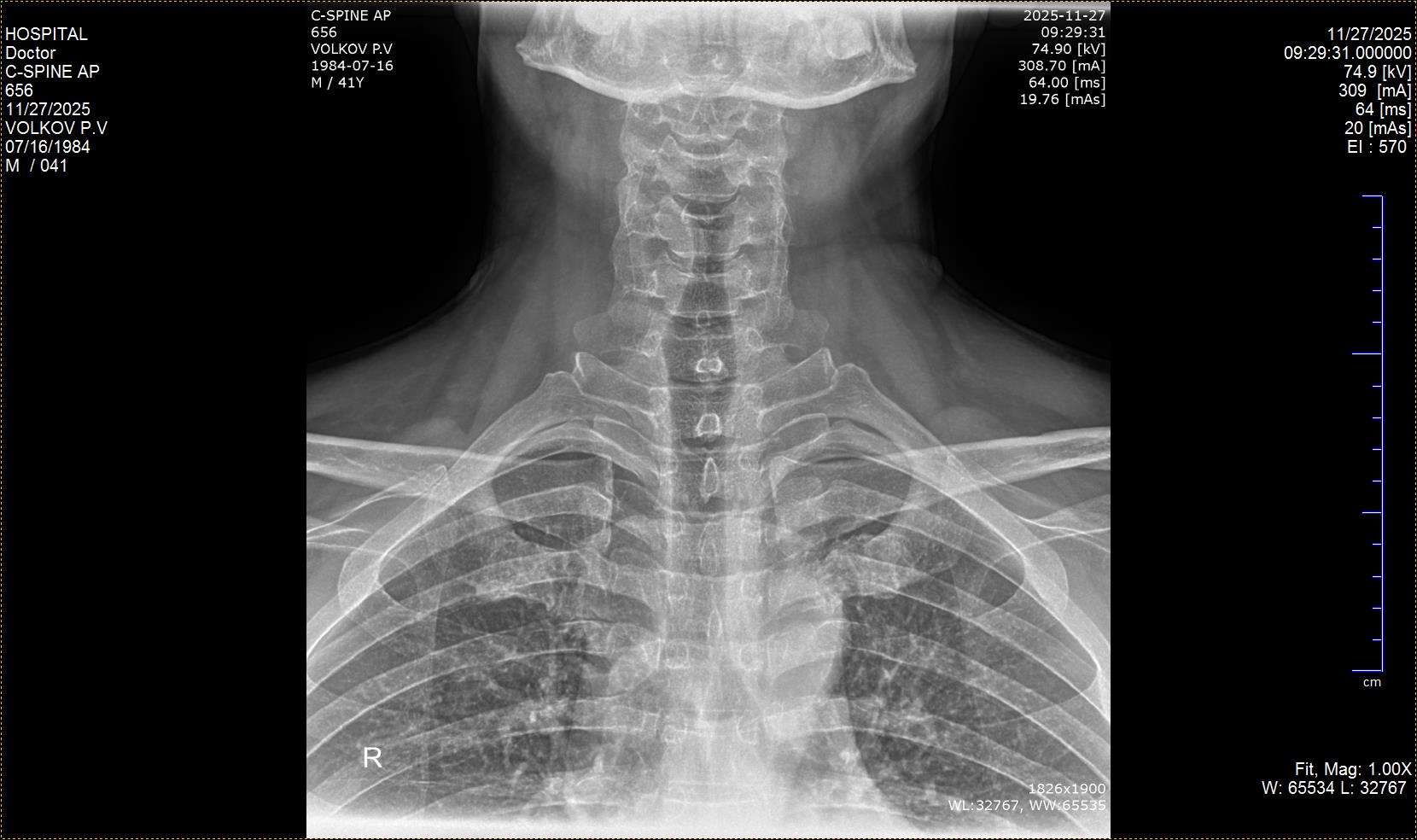 Помогите, пожалуйста, расшифровать снимки. Не поворачивается голова вправо, при попытке через силу мышцами её повернуть начинается боль слева и в затылочной части. Один врач ставит остеохондроз, спондилоартроз. Второй просто остеохондроз и сколиоз 1 степени. Третий: остеохондроз 2ст., спондилоартроз 1ст.