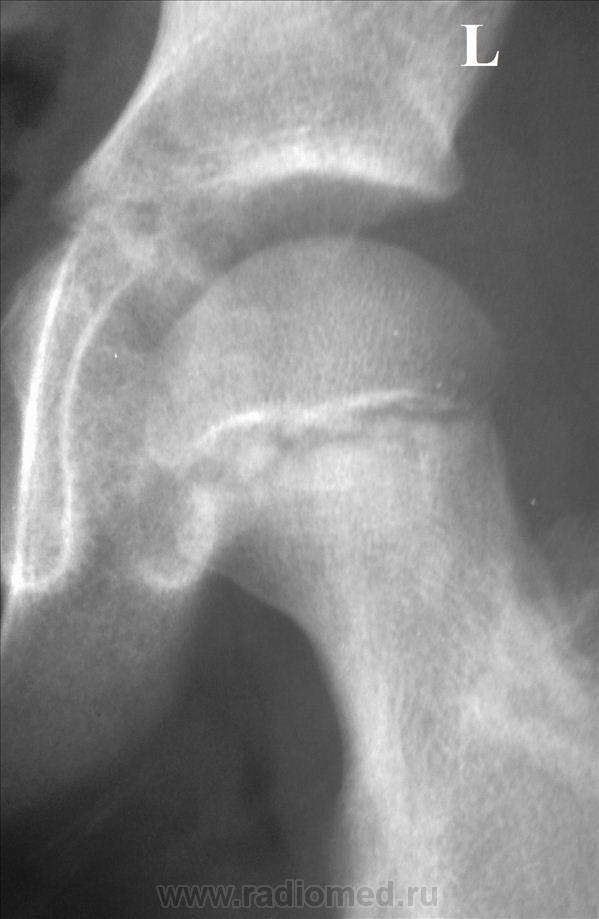 Я бы предположила юношеский остеоэпифизиолиз головки бедра, достаточно убедительная картинка.