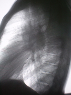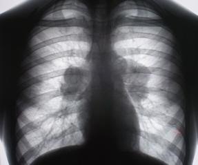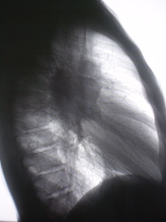 Рентгенологическое исследование, выполненное в апреле месяце 2008 г. выявило в грудной полости двустороннюю аденопатию за счет гиперплазии бронхо – пуцльмональных лимфатических узлов. Слева в области подмышечного сегмента нежное снижение прозрачности легочной ткани по типу «нежного пневмонита». Рентгенологических данных за объёмный процесс и полостное образование не выявлено. Выявлены изменения в крестце.