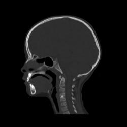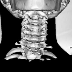 Ребенок 6 лет. Жалобы на выраженные боли в шейном отделе позвоночника. Со слов матери, боли в шее беспокоили длительное время. 2 недели отмечалась незначительная травма - девочка резко повернула голову в сторону, боли в шее услились. В настоящий момент отмечаются выраженные боли в шее, резкое ограничение движений, повышение температуры тела, воспалительные изменения в анализах, (возможно, связанные с пиелонефритом, который также имеет место). Поступала с направительным диагнозом "ротационный подвывих атланта", однако данные рентгенографии заставили расширить круг диагностического поиска.Родовую травму мать отрицает. Хотелось бы узнать мнение уважаемых коллег.