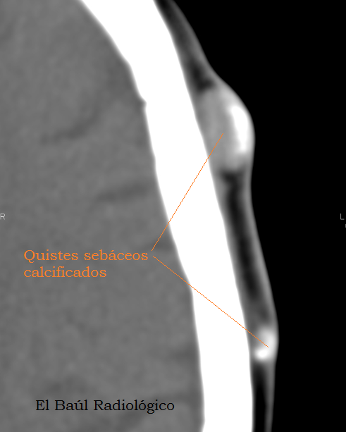 (One of the most common findings, on CT scans or craniocerebral MRI images, are sebaceous calcified cysts of the scalp. Some radiologists confuse them with osteomas, but they are completely different things and its pathological impact as well. We present some cases of sebaceous calcified cysts of the scalp)