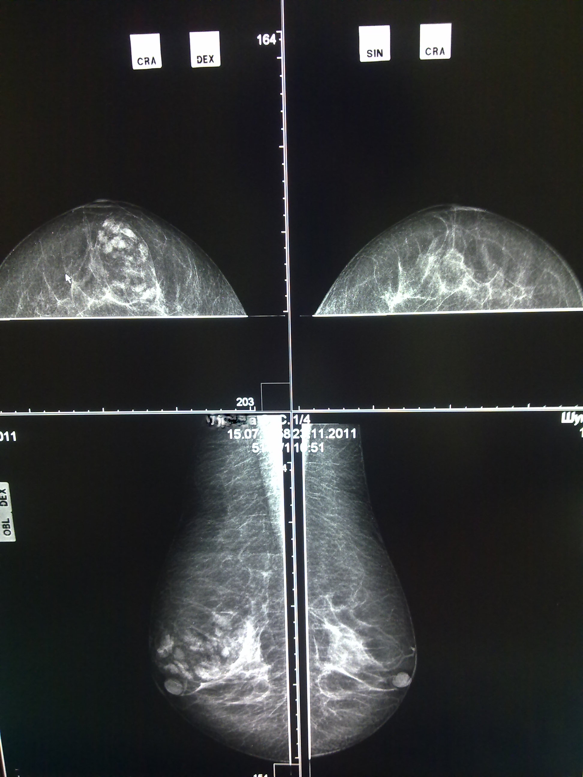 Женщина, 1958 г.р, пришла на маммоскрининг, до этого не обследовалась,ничего не беспокоит. Помогите, пожалуйста определиться, что это, множественные фиброаденомы? рак?
