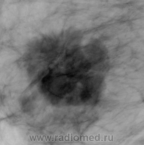 При детальном анализе "тени опухолевидного образования" создается впечатление, что тень является конгломератом, состоящим из отдельных округлых образований, что свидетельствует о том, что опухолевый рост "происходил" из нескольких "точек роста".