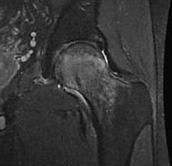 МРТ сустава выявило выраженных отёк в шейке и головке бедренной кости: